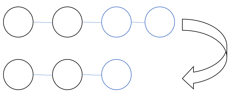 squash는 다수의 커밋을 합치는 작업이다. 정확히는 squash라는 명령어는 없고, rebase를 이용해서 squash를 한다. 그림으로 설명하면, 아래와 같다. 그림을 좀 엉성하게 그리긴 했다만 파란 커밋 2개가 하나가 되었다는 도식이다.